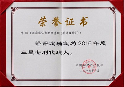我所陈晖副主任、周长清副主任被评选为《2016年度三星专利代理人》 我所陈晖副主任、周长清副主任被评选为《2016年度三星专利代理人》 我所陈晖副主任、周长清副主任被评选为《2016年度三星专利代理人》 2017年1月,我所陈晖副主任、周长清副主任被评选为《2016年度三星专利代理人》。 上一条我所谭武艺被评选为《2016年度二星专利代理人》 下一条我所负责人赵洪主任被评选为《2016年度四星专利代理人》 我所谭武艺被评选为《2016年度二星专利代理人》